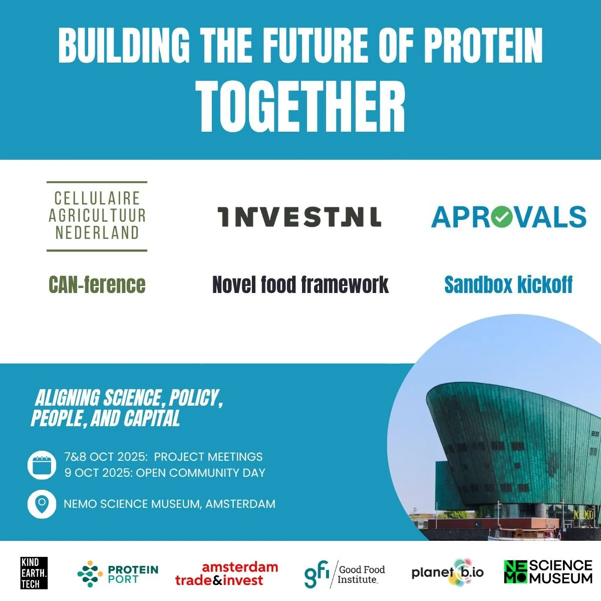 On the community day October 9th, we will explore how regulation, strategy and capital can drive growth in precision fermentation and cultivated meat. The program features the new Novel Food Investor Framework, the launch of the APROVALS regulatory sandbox, highlights from active CAN Nationaal Groeifonds projects, and an inspiring exhibition connecting education, research and scaleup. It promises to bring fresh insights, new connections and inspiration to shape the future of protein together.